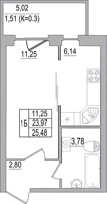 1-к. квартира, 25.48 м², 10/10 эт.