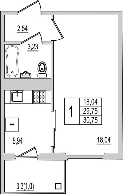 Квартира, этаж 4, площадь 30.75м²
