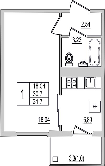 1-к. квартира, 31.7 м², 1/10 эт.