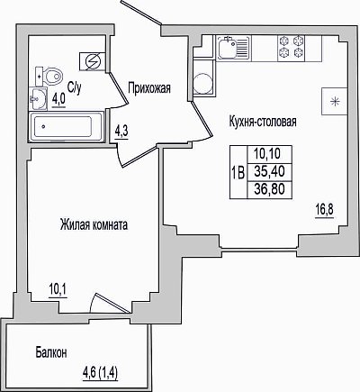 Продается 1-комнатная квартира №129 в строящемся доме по адресу ул. Пражская, д. 9.