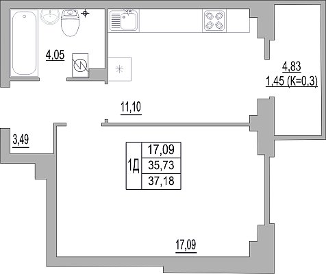 Продается 1-комнатная квартира №179 в готовой новостройке на ул. Юности, 32 (1 этап строительства). Дом сдан!