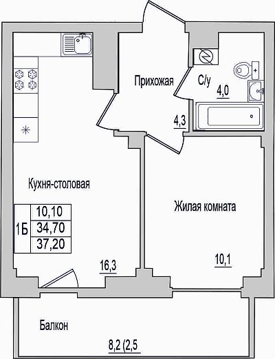 1-к. квартира, 37.2 м², 7/10 эт.