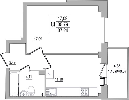 1-к. квартира, 37.24 м², 3/10 эт.