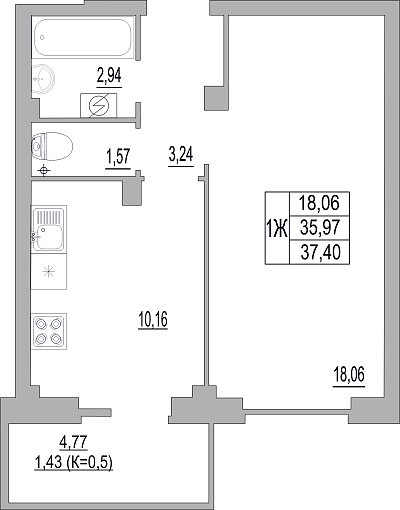 Продается 1-комнатная квартира №230 в готовой новостройке на ул. Юности, 32 (1 этап строительства). Дом сдан!