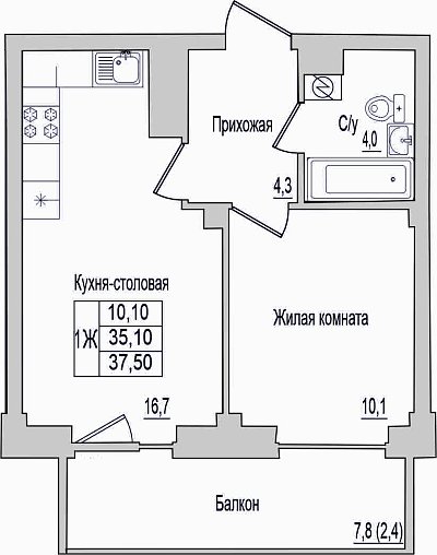 1-к. квартира, 37.5 м², 3/10 эт.