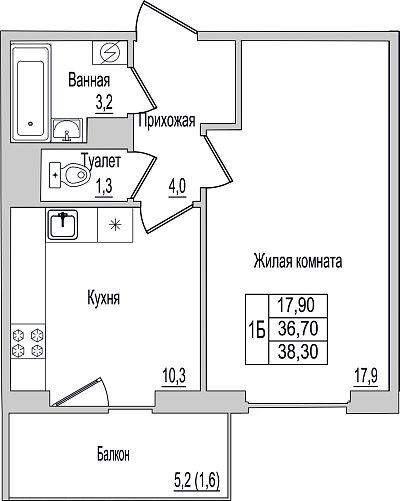 1-к. квартира, 38.3 м², 5/10 эт.