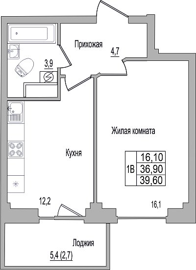 1-к. квартира, 39.6 м², 6/9 эт.