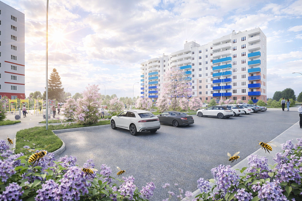 Наземная парковка продумана так, чтобы места хватило каждому. Она расположена по периметру всего дома. Рядом с парковкой расположены прекрасные зеленые пешеходные дорожки, где вы всей семей сможете выгуливать своих пушистиков.