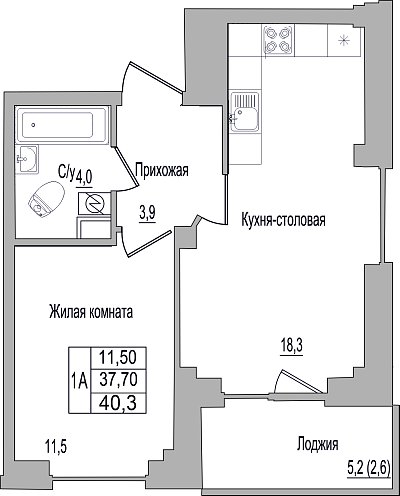 1-к. квартира, 40.3 м², 6/9 эт.