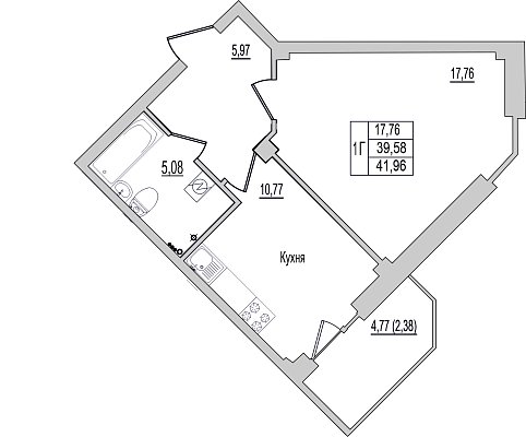 1-к. квартира, 41.96 м², 1/10 эт.