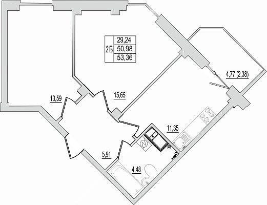2-к. квартира, 53.36 м², 10/10 эт.