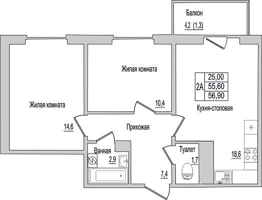 Продается 2-комнатная квартира №153 в строящемся доме по адресу ул. Героя России Досягаева, 6 в новом жилом комплексе «Семейный».ЖК «Семейный» - там, где удобно жить всей семьёй