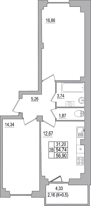 2-к. квартира, 56.9 м², 9/10 эт.