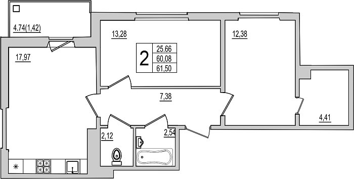 2-к. квартира, 61.5 м², 2/10 эт.