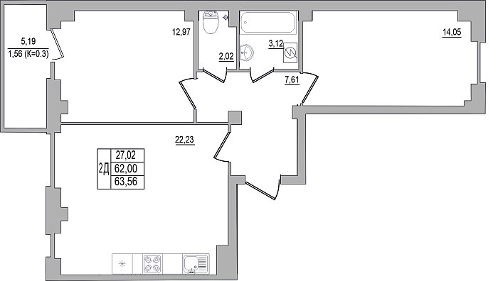 Продается 2-комнатная квартира №110 в строящемся доме на ул. Юности, 32 (2 этап строительства).