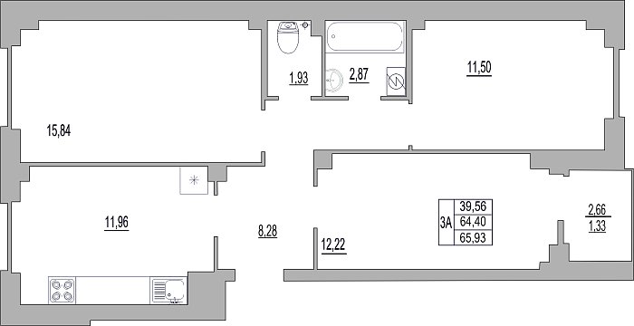 3-комнатная квартира, этаж 1, площадь 65,9 м²