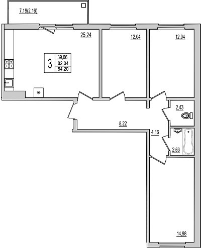 Продается 3-комнатная квартира №1 в строящемся доме на Рижском проспекте.
